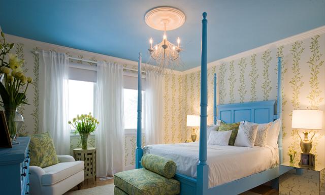 Натяжные потолки голубого цвета