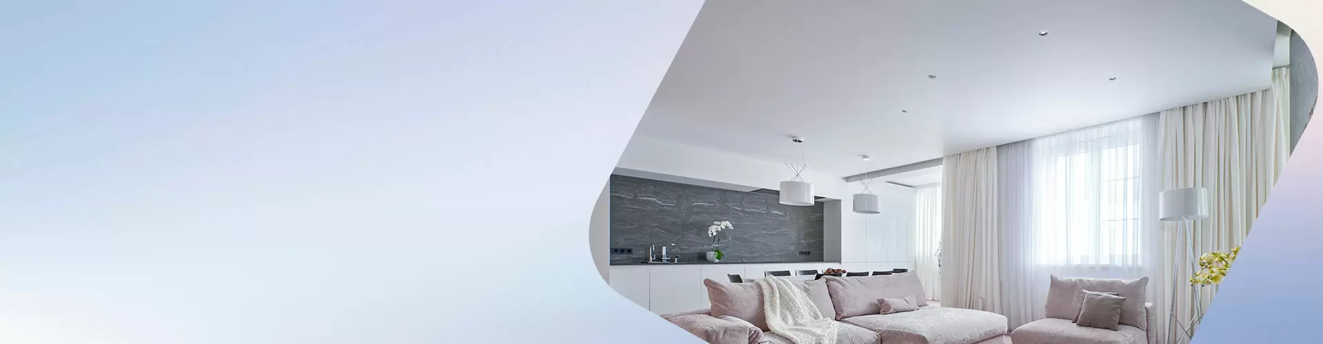 Зал, это то помещение, которое всегда выглядит представительно и потолок должен этому соответствовать. Установив в зале арт потолки, такие как, многоуровневый, потолок с фотопечатью, спайку, парящий, звёздное небо, double-vision, вы предадите изюминку помещению. Также стоит отметить классический белый матовый потолок, который сочетается с любым интерьером.