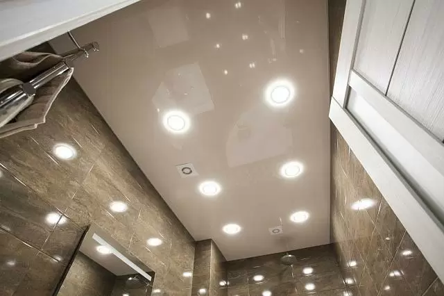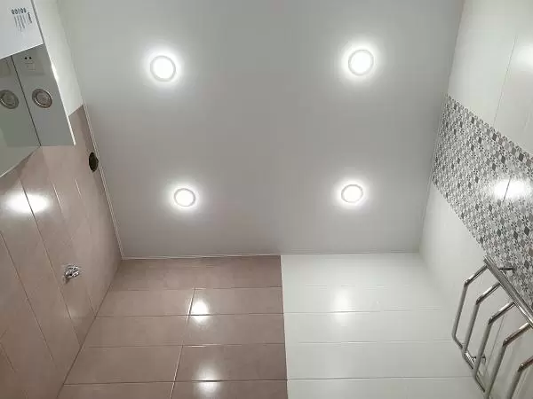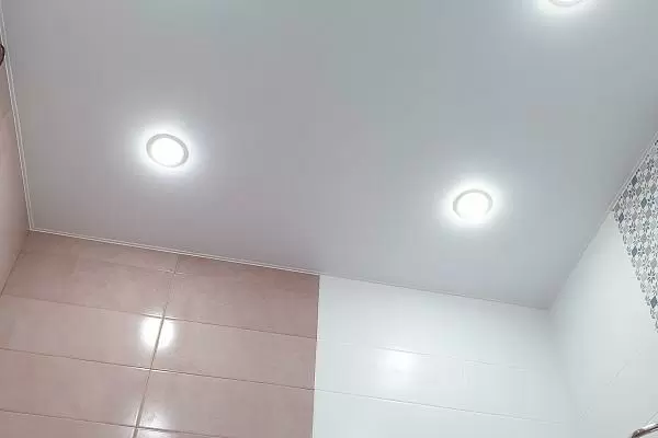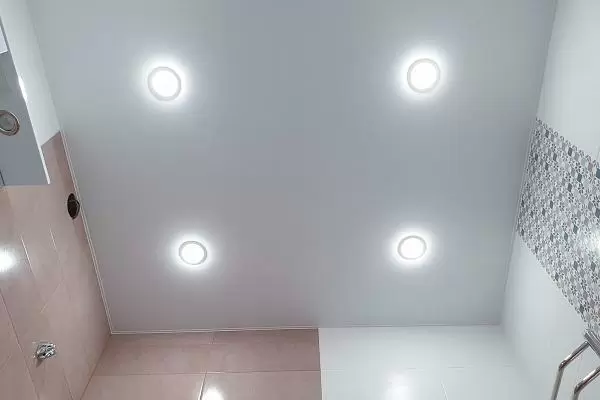 • Современный натяжной потолок в ванной комнате, изготовленный из ПВХ материалов, обладает стойкостью к высокой влажности и переменному температурному режиму.