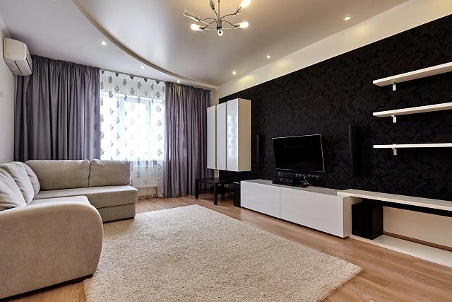 Сатиновый бежевый в гостиной 13м²