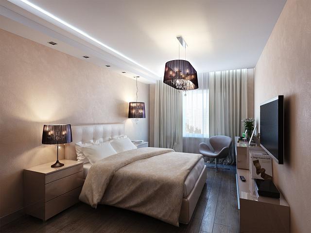 Сатиновый белый в спальне 16 м²