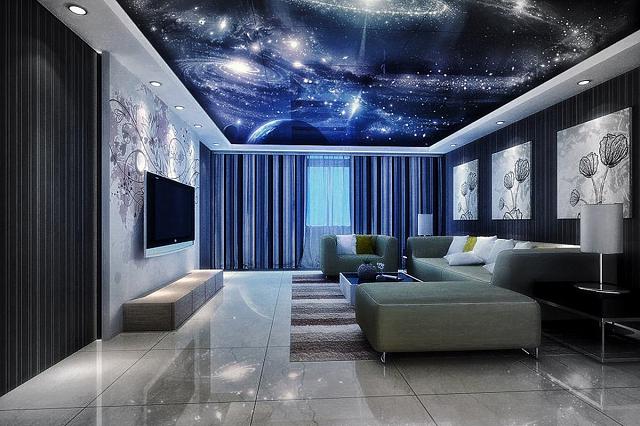 В спальне и в детской натяжной потолок "Звёздное небо" подарит Вам спокойствие и умиротворение, в гостиной удивит гостей. Очень эффектно будет смотреться в ресторанах, кинотеатрах и ночных клубах.